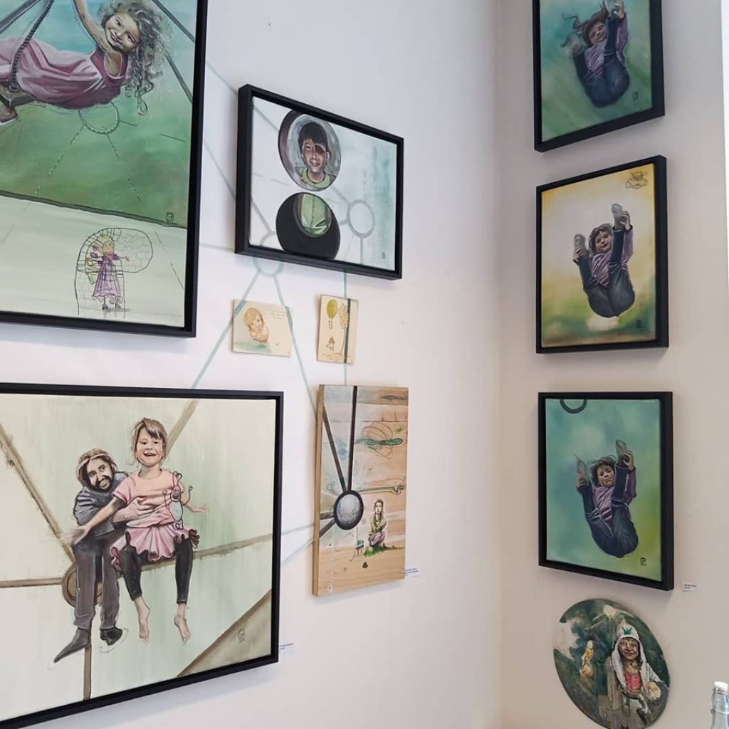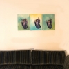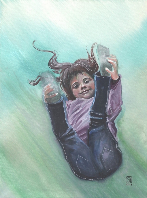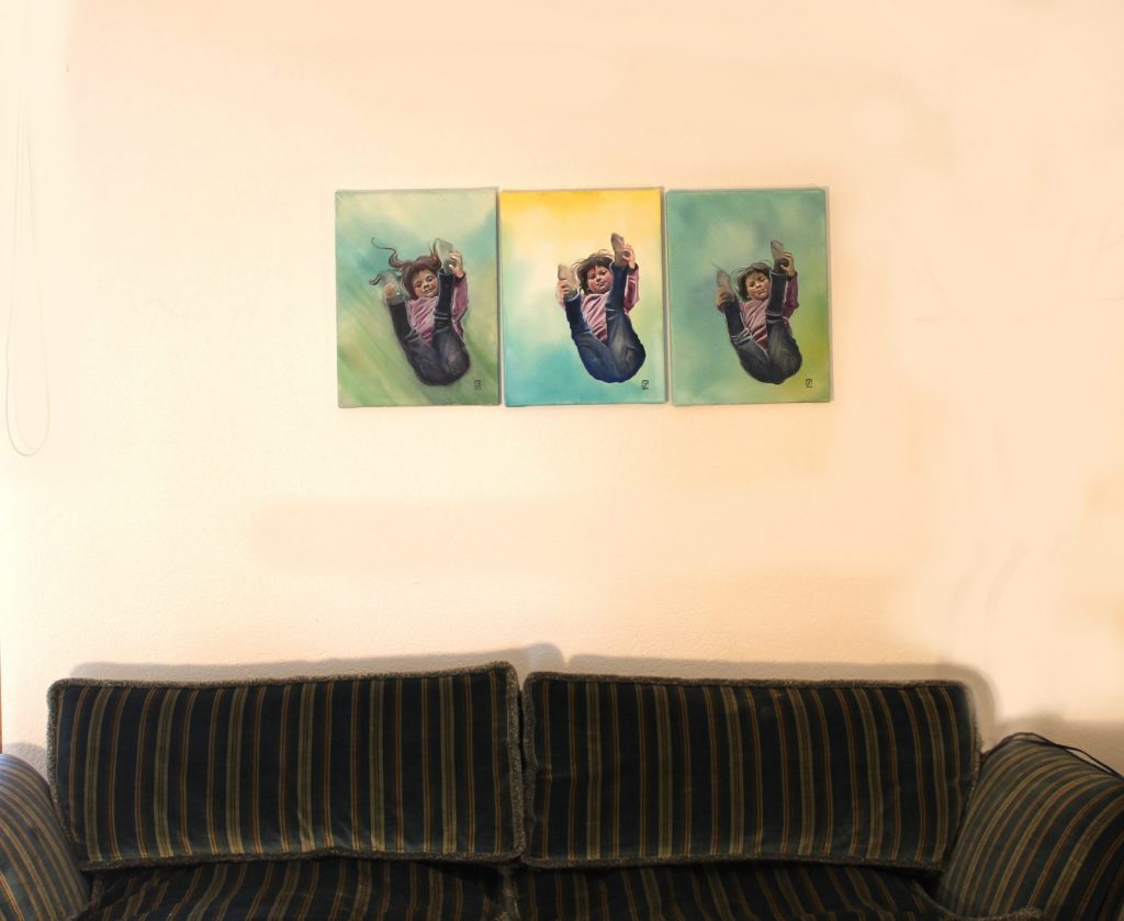 Angelehnt an dem bekannten Kinderspiel „Stille Post“ (Flüster Post) ist diese Serie entstanden. Dabei wurde das 1. Bild von einer Fotovorlage abgemalt und dann jedes weitere Bild vom vorhergehenden. Somit verändert sich das Bild mit jedem Male.