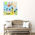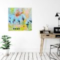Das Bild Blumentänzer 2 ist ein sehr romantisches Gemälde in zarten Pastellfarben wie hellblau. gelb und mint.