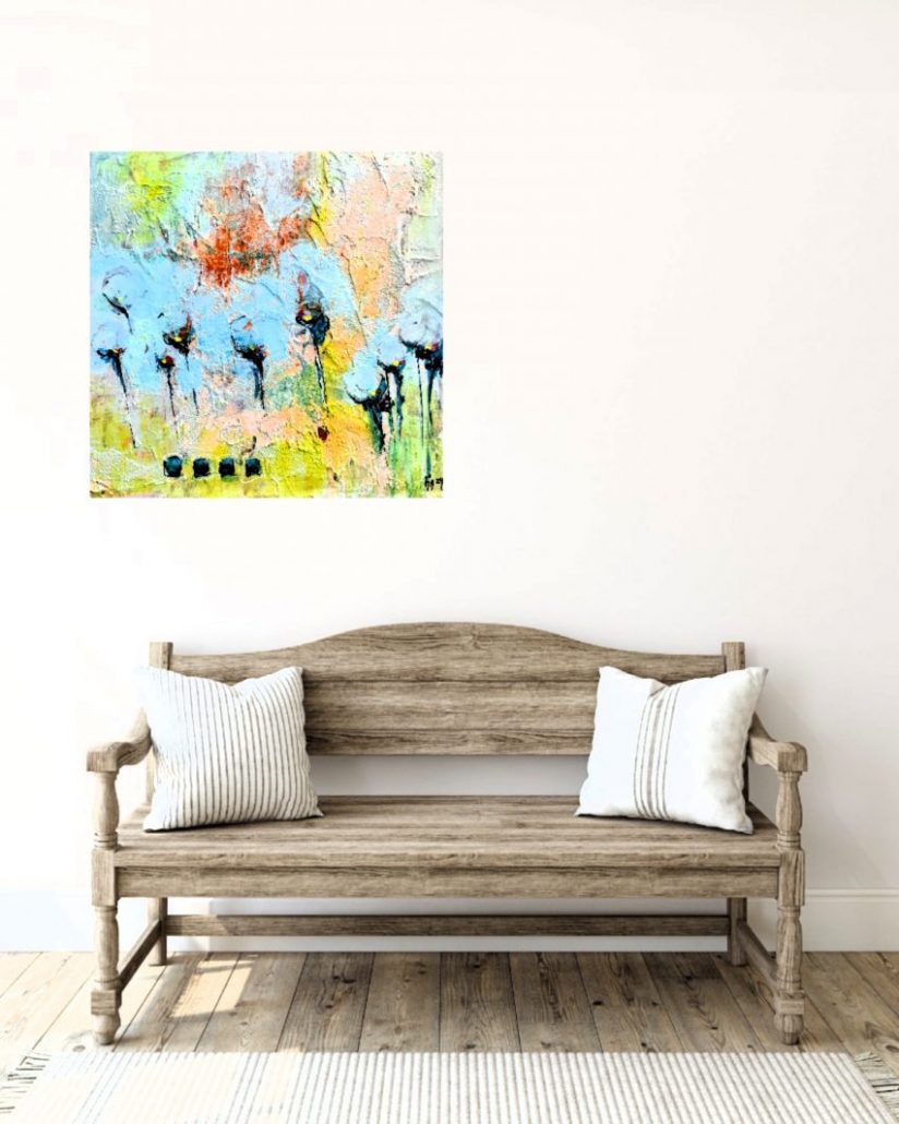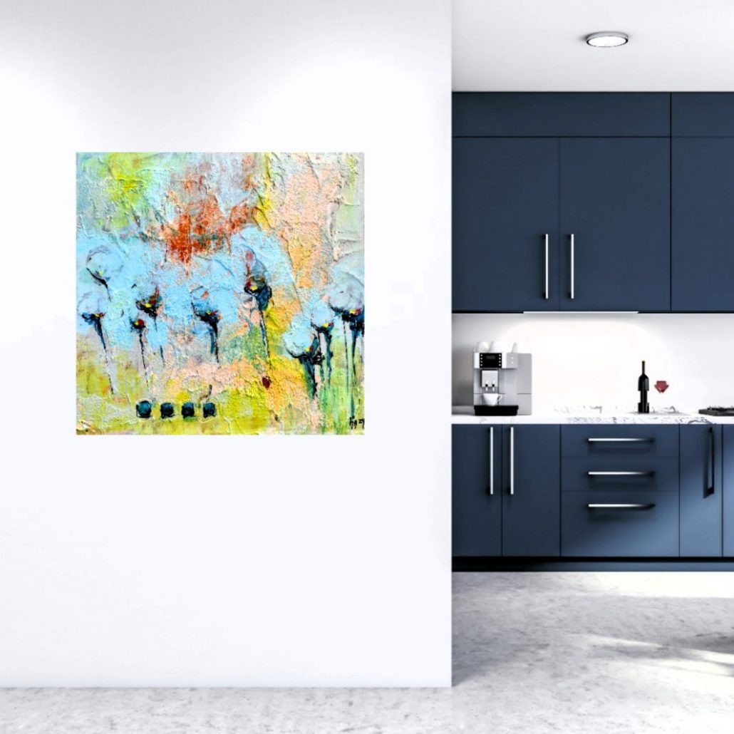 Dieses Kunstwerk ist mit Acrylfarben und Spachtelmasse erschaffen, das einen 3D-Effekt ergibt. Es hat die Größe von 30 x 30 cm und ist ein Unikat.