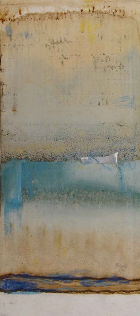 Collage aus weichen Papieren, Aquarell; 57,5 x 25,5 cm