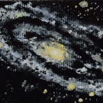Dieses Ölgemälde zeigt eine faszinierende Darstellung der Eagle Nebula. Das Bild strahlt eine geheimnisvolle und ätherische Atmosphäre aus. Vorherrschend sind Gelb- und Grautöne, durchsetzt mit zarten Blau-, Grün- und Rosanuancen. Über die gesamte Struktur verteilt sind zahlreiche kleine weiße Punkte, die Sterne darstellen. Diese hellen Sprenkel verleihen dem Bild Tiefe und verstärken den Eindruck eines weiten, sternenerfüllten Raums. Die Pinselstriche sind deutlich sichtbar und verleihen der kosmischen Szene eine greifbare, fast organische Qualität. Die Verwendung von Licht und Schatten erzeugt einen dreidimensionalen Effekt, der die Illusion von Bewegung und Tiefe im Weltraum verstärkt. Der dunkle Hintergrund, der die leuchtenden Nebel umgibt, verstärkt den Kontrast und lässt die Farben und Formen noch intensiver hervortreten. Dies erzeugt eine dramatische Wirkung und betont die Weite und Mysterien des Universums.