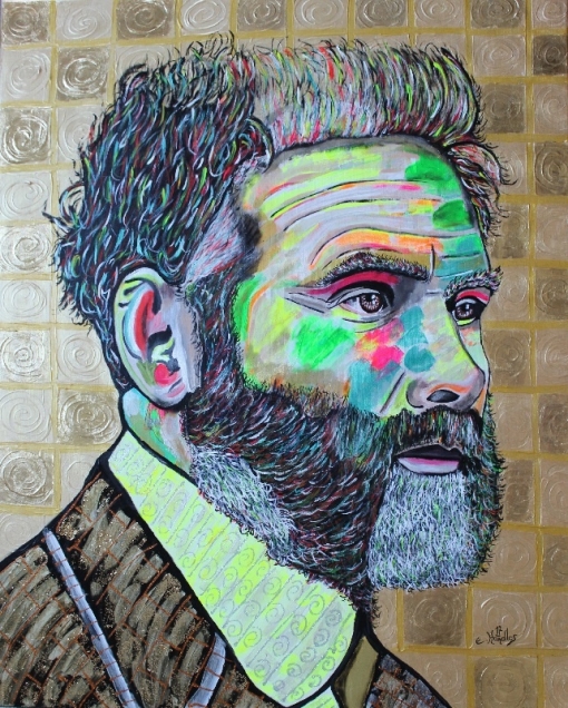 Acryl , Effekt, Neonfarben sowie Blattmetall auf Leinwand 100x80 cm 2017