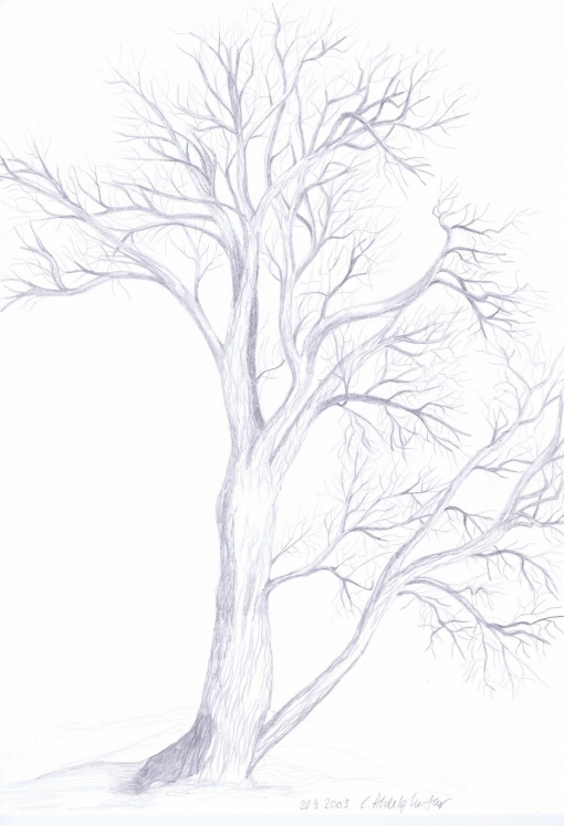 Diese detaillierte, feine Bleistiftzeichnung fängt die zarte Schönheit eines Weidebaums im Winter ein. Die filigrane Linienführung, die die feinen Verästelungen der Zweige präzise wiedergibt und die sanften Schattierungen, die dem Stamm und den Hauptästen Volumen und Tiefe verleihen, lassen den Baum lebendig erscheinen.