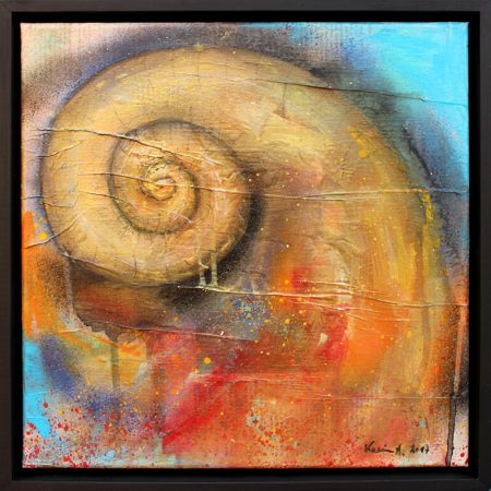 Acryl auf Zeitung auf Leinwand, 30 cm (B) x 30 cm (H) x 2 cm (T), gerahmt, signiert