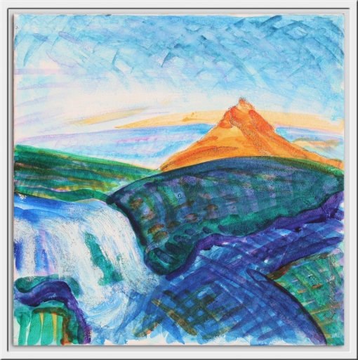 mehrschichtiger Farbauftrag in Acryl auf Künstlerleinen – 3D Holzkeilrahmen und weissem Schattenrahmen – ca. 40 x 40 cm