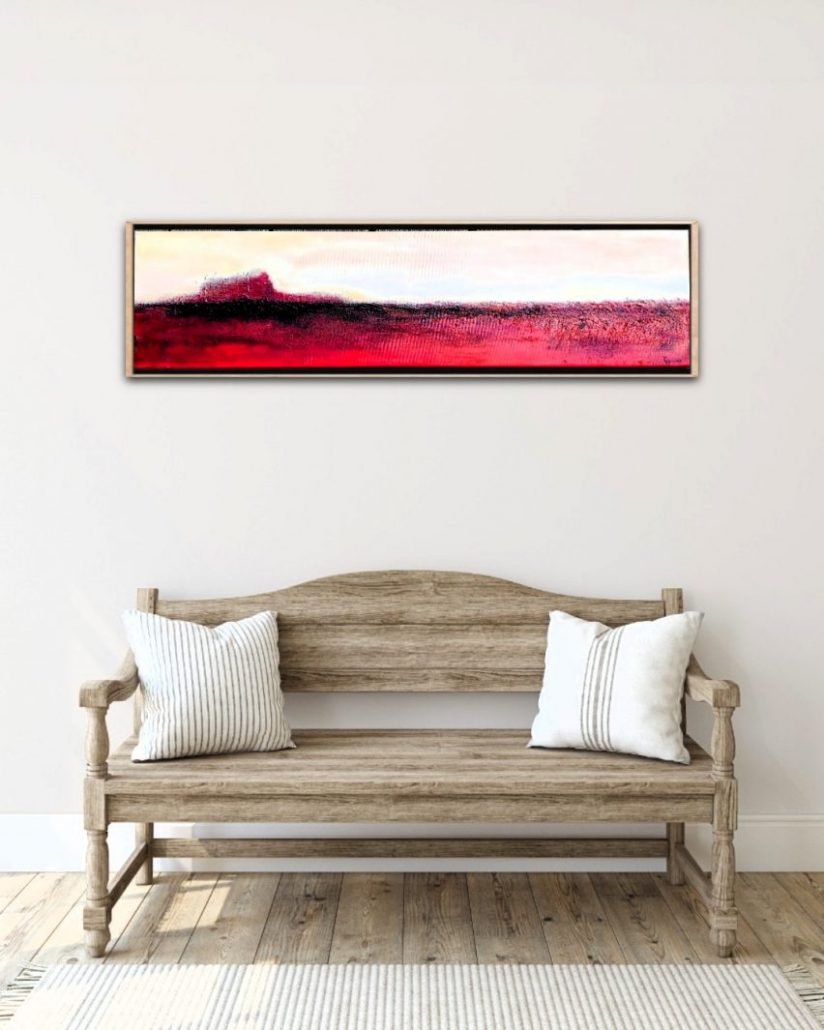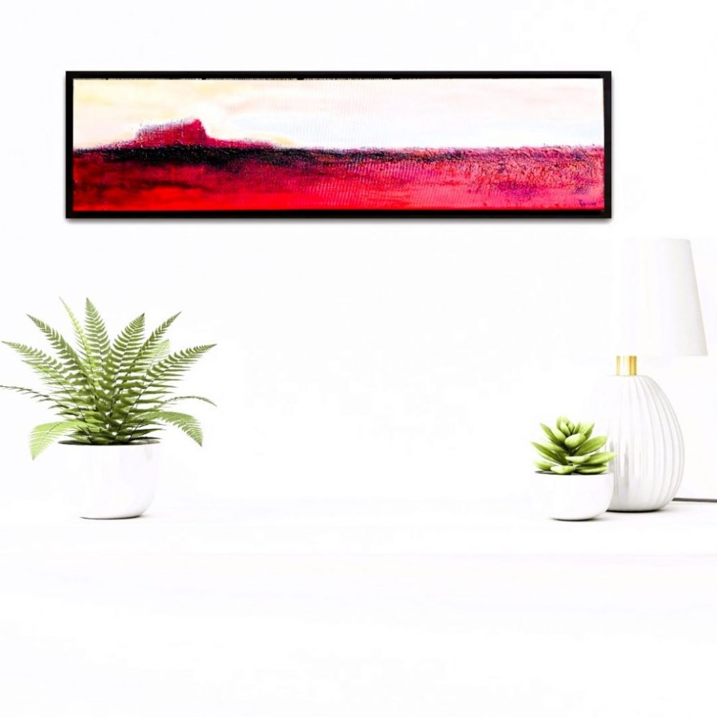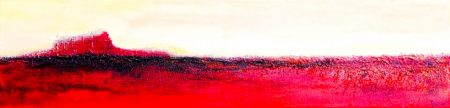 Das Bild -rotes Land- ist ein abstraktes Gemälde in kräftigen leuchtenden Acrylfarben. Rot dominiert dieses Gemälde.