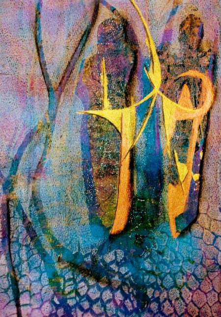 Acryl-Monoprint auf Papier, 20,7 x 29,2 cm im Passepartout 30 x 40 cm