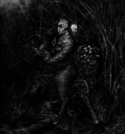 Digitales Schwarzweißgemälde (Grisaille). Bleistiftskizze als Grundlage (45 x 45 cm).