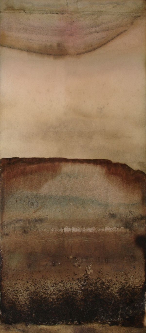 Collage aus weichen Papieren, Aquarell; 58×24,5 cm