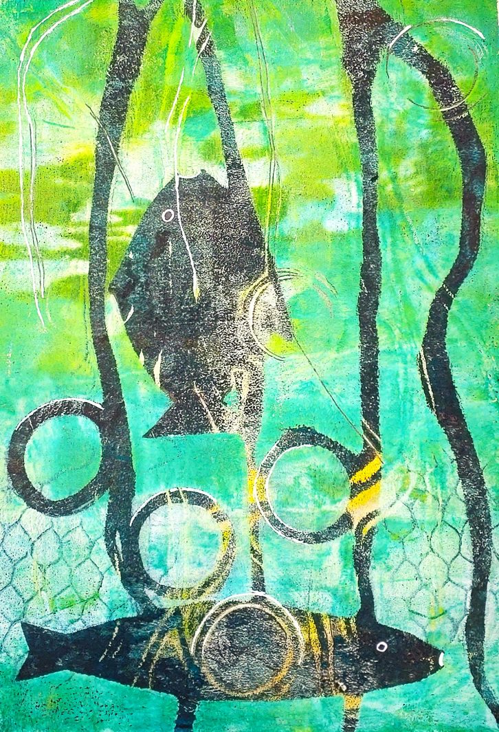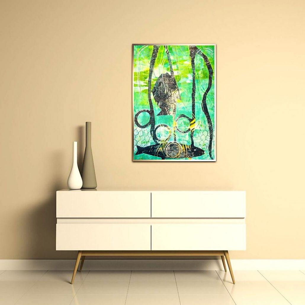 Acryl-Monoprint auf Papier, 20,7 x 29,2 cm im Passepartout 30 x 40 cm