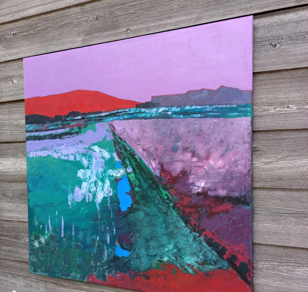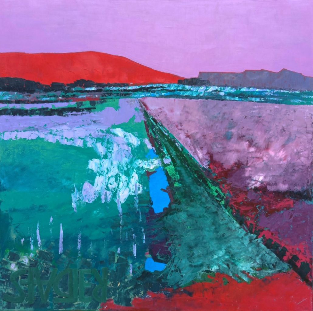 Öl auf Leinwand, Keilrahmen 90 x 90 cm.