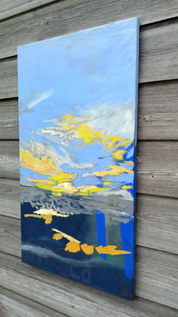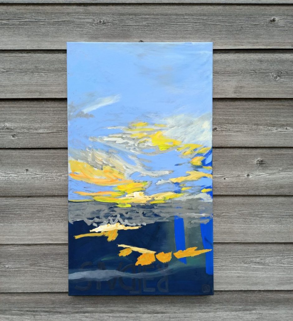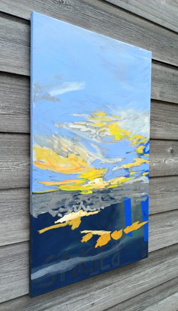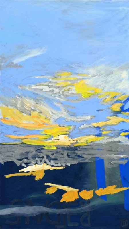 Abstrakte Landschaft. Gouache und Öl auf Leinwand. Keilrahmen 90 x 52 cm.