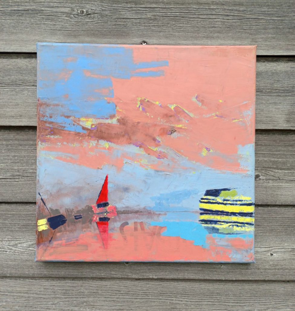 Expressionistische Landschaft, Öl auf Leinwand, 50 x 50 x 2 cm.