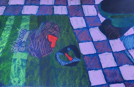 Mischtechnik. Öl und Farbstift auf Papier 29 x 19 cm.