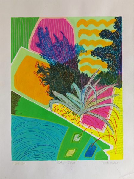 Felder im Garten. Gouache Mischtechnik auf Papier.