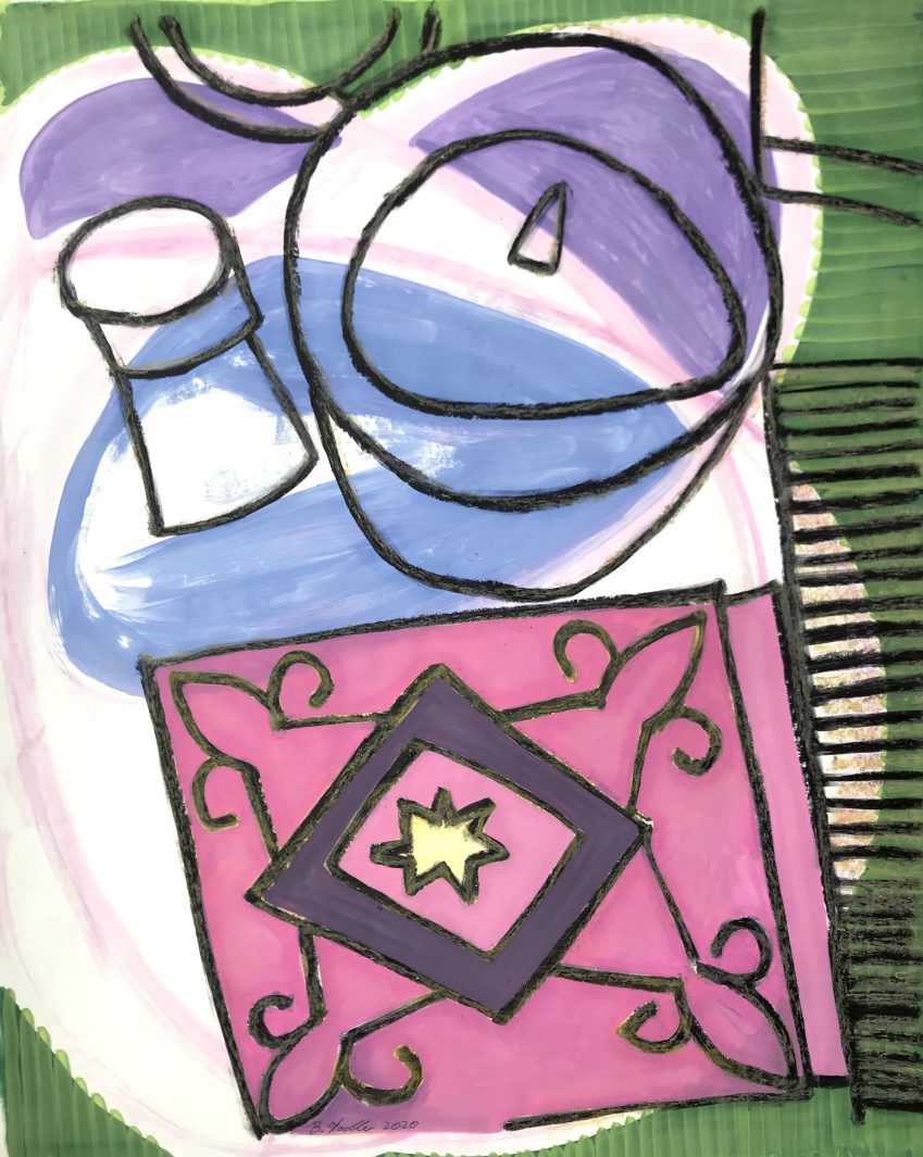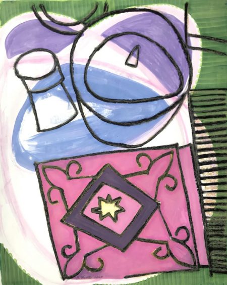 Abtraktes Stillleben. Gouache Mischtechnik auf Papier, 65 x 80 cm.