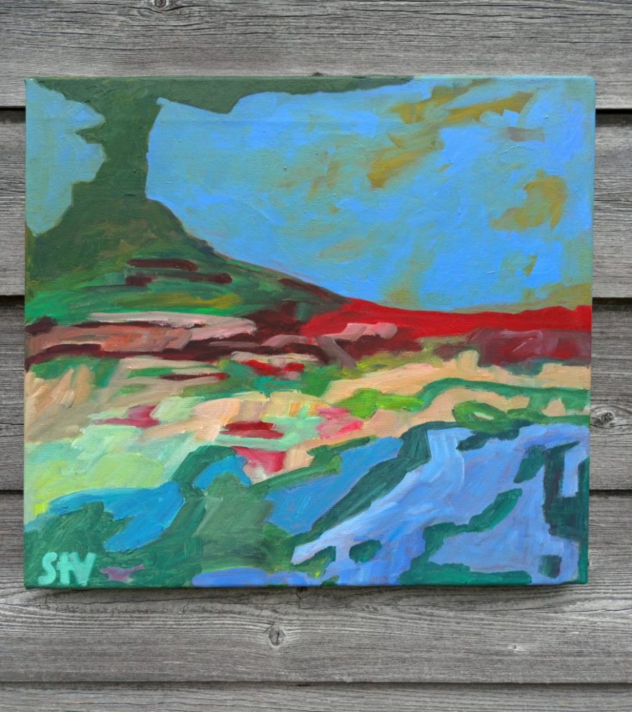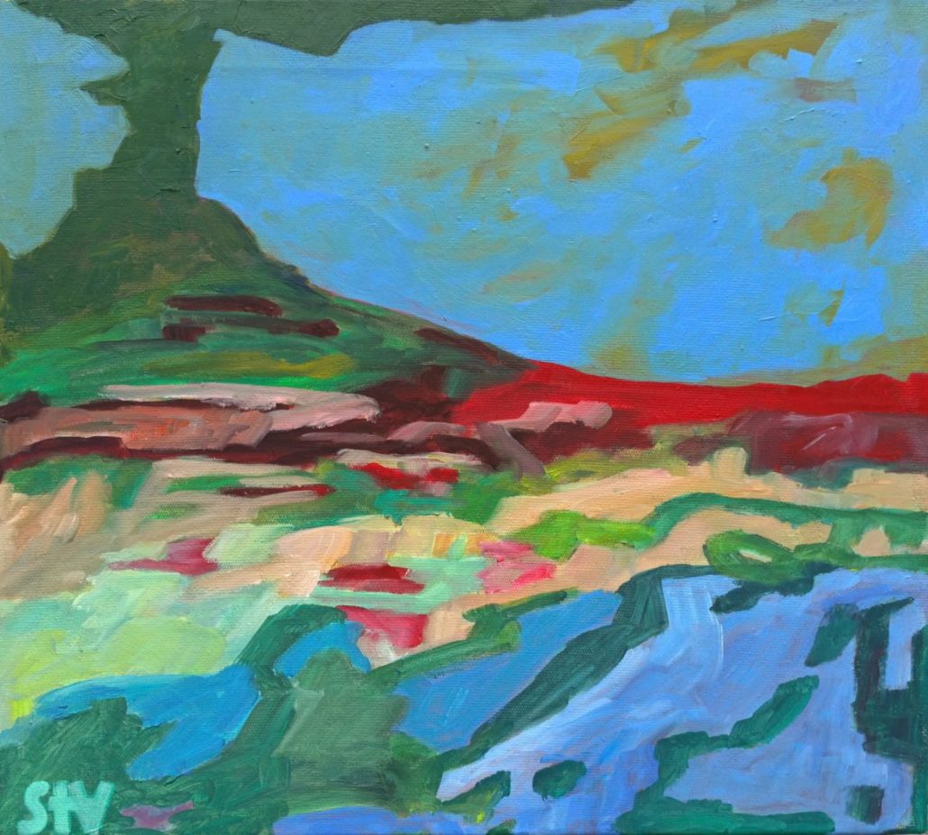 Surreale Landschaft, Keilrahmen 45 x 50 x 2 cm., Öl auf Leinwand.