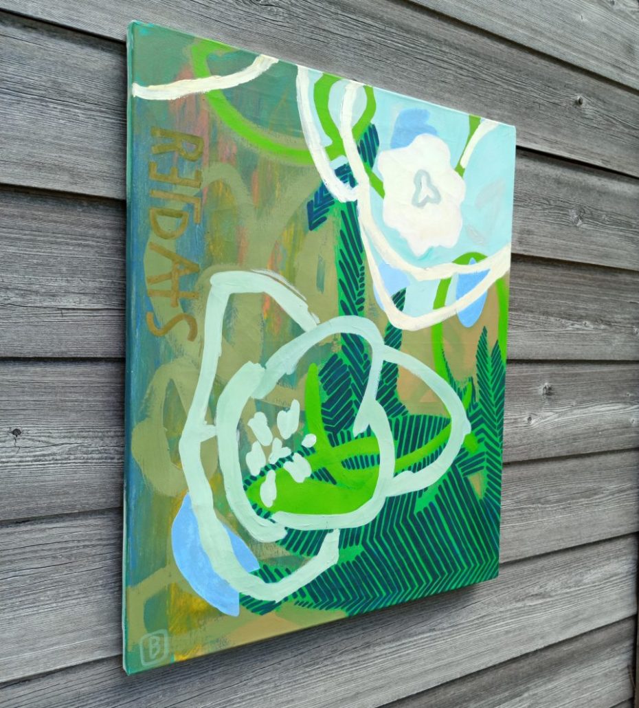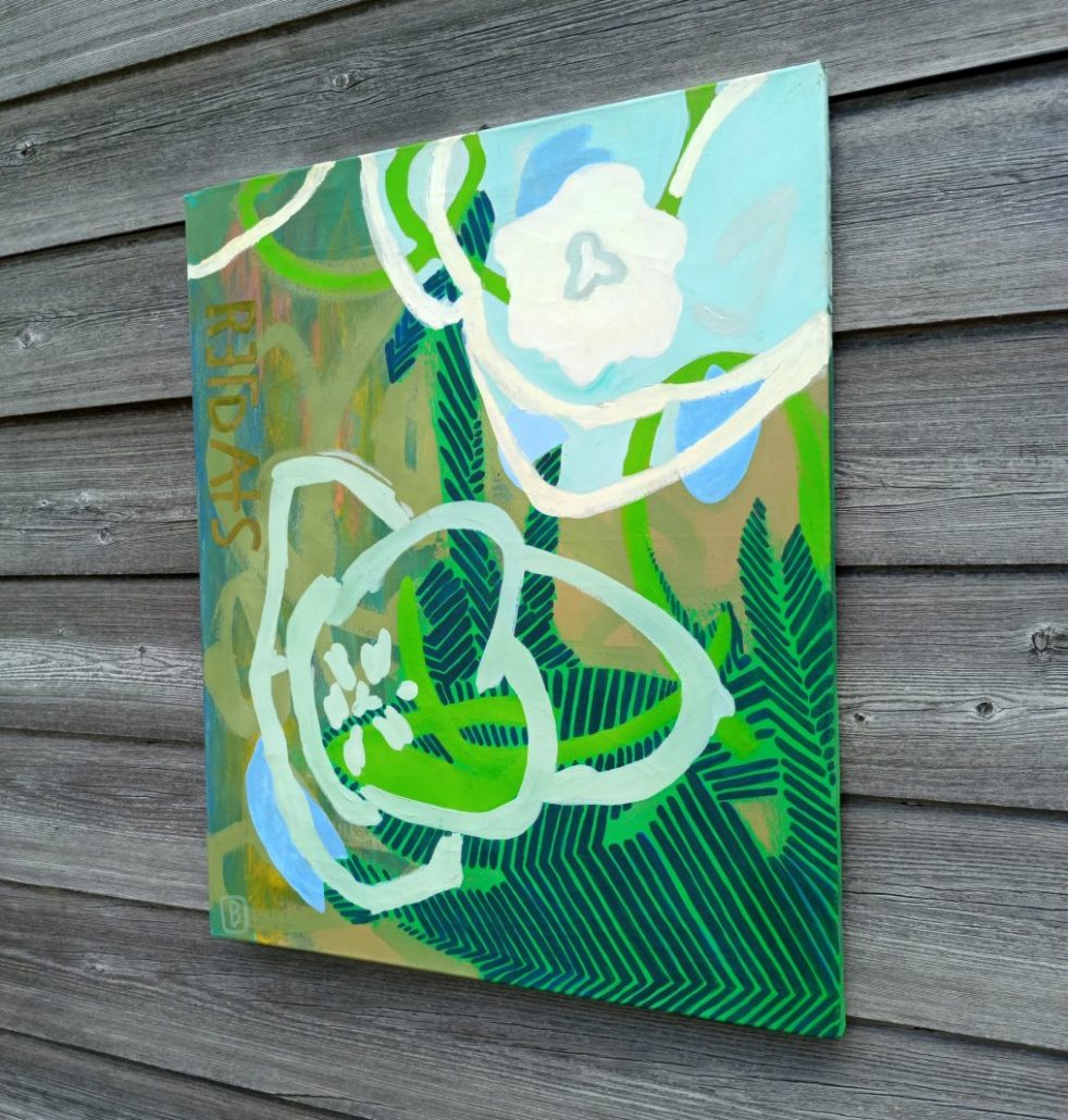 Abstraktes Stillleben, Öl und Gouache auf Leinwand.