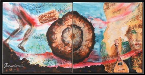 mehrschichtiger Farbauftrag in Acryl auf Künstlerleinen – 3D Holzkeilrahmen und Schattenrahmen – 2-teilig – ca. 80 x 40 cm