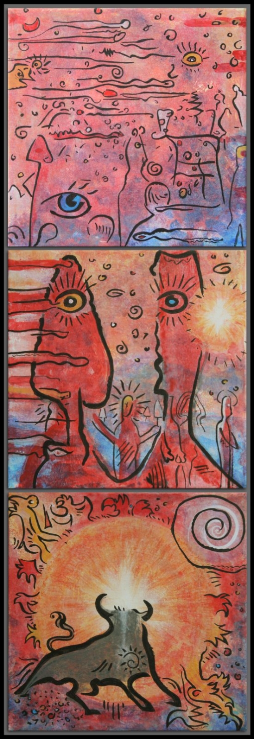 Acryl + Chinesische Künstler-Tusche, mit Rahmung ca 40 x 120 cm