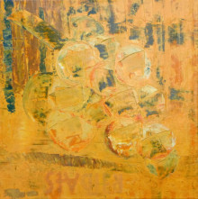 Beate Stadler, 2021Weintrauben – Abstraktes Stillleben in Öl. Keilrahmen 50 x 50 x 2 cm. Gefirnisst