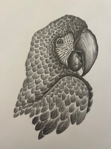 Manuela Gaensler, 2023Papagei, Bleistiftzeichnung, A4 Format
