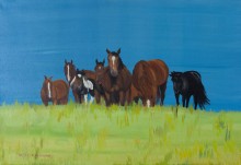 Claudia Luethi alias Abdelghafar, 2005Stimmungsvolles Ölgemälde einer ruhenden Pferdeherde auf Leinwand.