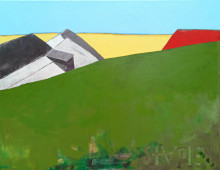 Beate Stadler, 2024Minimalistische Landschaft in Gouache und Öl auf Leinwand Keilrahmen 47 x 50 x 2 cm.